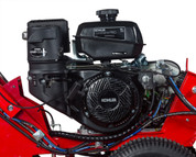 Handgeführte Stubbenfräse mit 2-Radantrieb, Drehgelenk und Benzinmotor