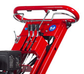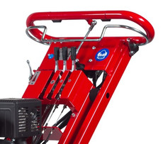 Die Fräse wird während des Transports und beim Fräsen ausschließlich über den Handgriff gesteuert. Die Bediengriffe für die Bremsen und die Sperre des Drehgelenks sind dabei leicht greifbar. Das Gerät verfügt über einen Sicherheitsbügel, der zum Schutz des Benutzers während des Transports und beim Fräsen heruntergedrückt sein muss.