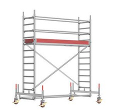 Unser Fahrgerüst-Programm bietet umfassende Möglichkeiten durch ausgereifte und bis ins Detail durchdachte Konzeption. Viel Platz für die Lagerung von Werkzeug und Material, viel Bewegungsfreiheit und Standfestigkeit für sicheres Arbeiten bis in große Höhen. Zulässige Verkehrslast: 2 kN / m² (Gerüstgruppe 3)