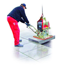 Ein abklappbarer Handgriff erlaubt das gefahrlose, exakte Positionieren des Verlegegutes.